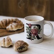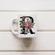 R Baş Harf Kırmızı Güller İle Sarılı Bardak 330 Ml Kişiye Özel Çiçekli Hediye Beyaz