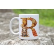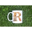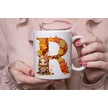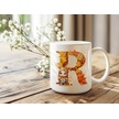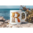 R Harf Sonbahar Yaprak Temalı Kupa Bardak - Sevimli Figürler İle Alfabe Harfli Bardak - Kişiye Özel Beyaz