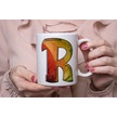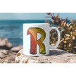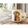 R Harf Yaprak Renkleri İle Kupa Bardak - Kişiye Özel Alfabe Harfli Bardak - Hediye Beyaz