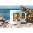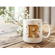 R Harfi Bal Arısı Tasarım Kupa Bardak - Bal Ve Petek Desenli Kişiye Özel Kahve Kupası - Hediyelik Beyaz