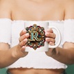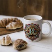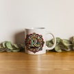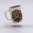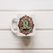 R Harfi Boho Bardak, Renkli Özel Tasarım Hediyelik Harfli Kupa, 330ml Porselen Beyaz