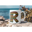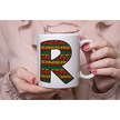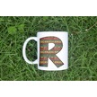 R Harfi Etnik Desenli Kupa - Afrika Tarzı Kahve Çay Kupası - Hediyelik - Black History Beyaz