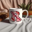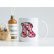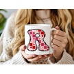 R Harfi Pembe Kareli Kalpli Göz Emojili Kupa Bardak Eğlenceli Kareli Tasarım Kahve Çay Kupası 07 Beyaz
