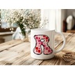 Sevimli Kedi Ve Çiçek Temalı No: 5 Hediyelik Baskılı Çay Kahve Sunum Kupa Bardak Beyaz