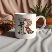 R Harfi Yılbaşı Temalı Kupa Bardak - Yeni Yıl Konsept Yamalı Efekt Tasarım - Noel Hediye Beyaz