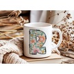 R Harfli Pastel Çiçek Desenli Kahve Kupası - Kişiye Özel Çiçekler Koleksiyonu Bardak - Hediye Beyaz