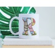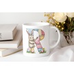 R Harfli Tavşan Kupa - Patchwork / Yamalı Desenli İsme Özel Kupa - Pastel Vintage Tarz Hediyelik 07 Beyaz