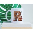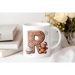 R Kurabiye Harf Ve Ayıcık Detaylı Kupa Bardak - Yeni Yıl / Yılbaşı Temalı Tasarım - Noel Hediye Beyaz
