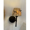 Rafya Hasır Siyah Fiyonk Kurdele Kablosuz Pilli Aplik - Alt Siyah Siyah