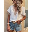 Rahat Gevşek Kısa Kollu Kadın Bluz Üstleri Moda Beyaz V Yaka Şifon Kadın Gömlek Büyük Boy Kadın Giyim Blusas 21064 Beyaz