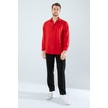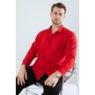 Rahat Kesim Keten Dokulu Gömlek Kırmızı