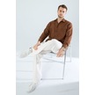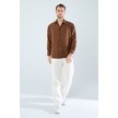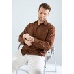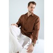 Rahat Kesim Keten Dokulu Gömlek Koyu Kahve