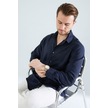 Rahat Kesim Keten Dokulu Gömlek Lacivert