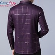 Rahat Up Erkekler Ekose Kavisli Hem Gömlek Casual İş Düğmesi Gömlek Uzun Kollu Damalı Erkek Gömlek Mor