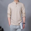Rahat Up Polo Gömlek Erkekler Moda Uzun Kollu Mandarin Yaka Gömlek Erkek Rahat Keten Gömlek Adam Artı Beyaz Haki