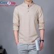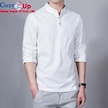 Rahat Up Polo Gömlek Erkekler Moda Uzun Kollu Mandarin Yaka Gömlek Erkek Rahat Keten Gömlek Adam Artı Beyaz Mavi