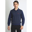 Siyah Polo Yaka Çizgili Uzun Kollu Erkek Kazak 7289 Siyah