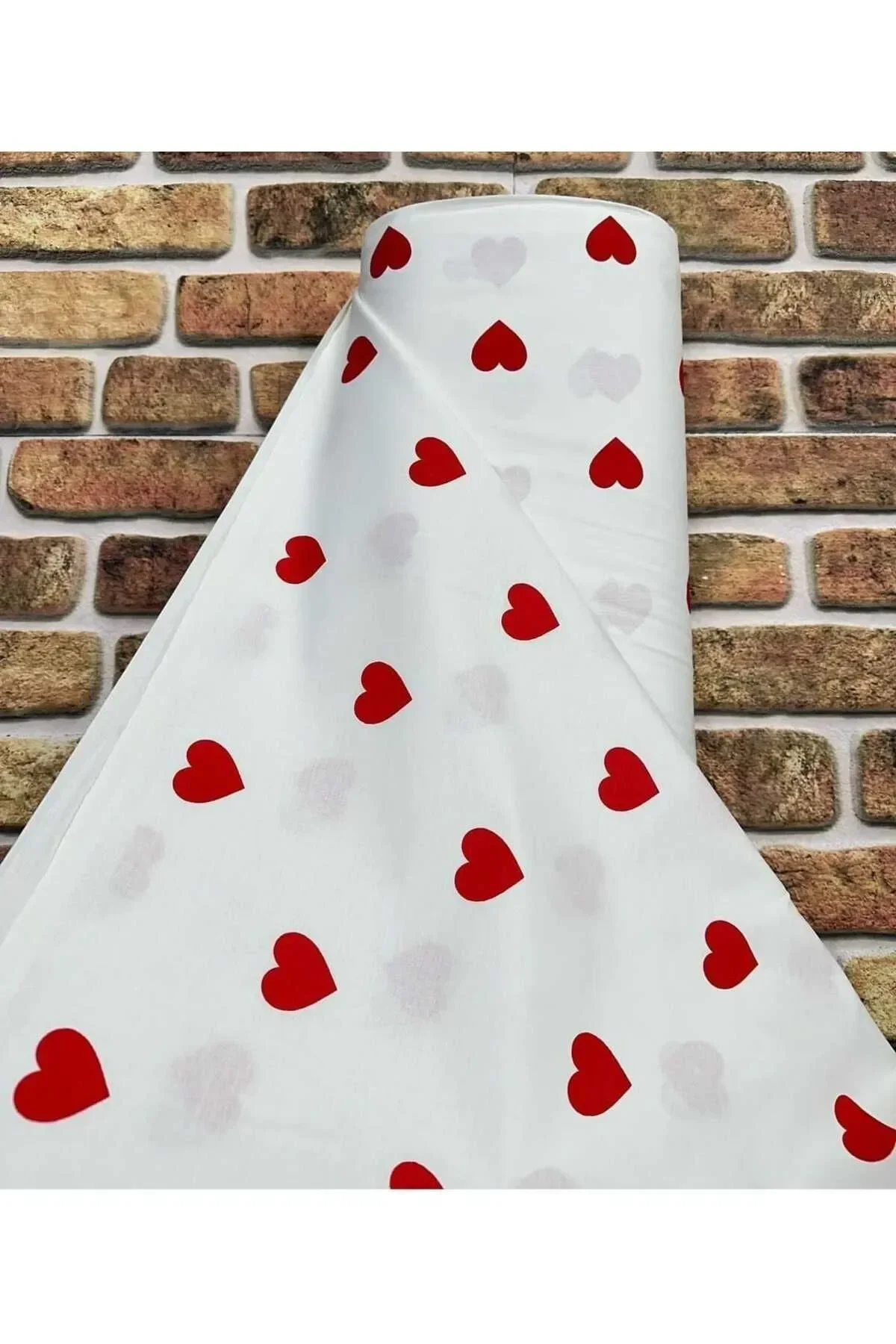 Ranforce Metrelik, Nevresimlik Kumaş - 100x240 Küçük Kalpli
