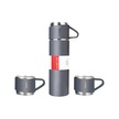Ranyeek 304 Çelik Isı Saklama Termosu Seti 500ml - Dış Mekan, Araç Kullanıma Uygun, 3 Bardaklı Isı/sıcaklık Tutucu Matara Gri Gri