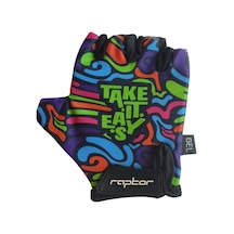 Raptor Çocuk Eldiveni Kısa Parmak Çocuk Bisiklet Eldiveni Silikon Jelli Take İt Easy Desenli M Beden