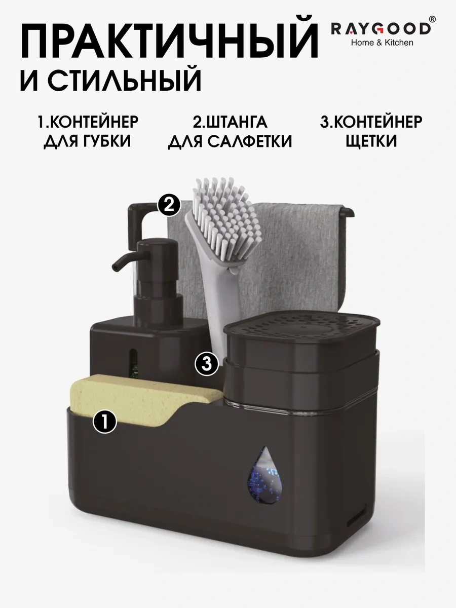 Raygood Dozajlayıcılı Bulaşık Deterjanı İçin Mutfak Dispenseri 343183151 Siyah