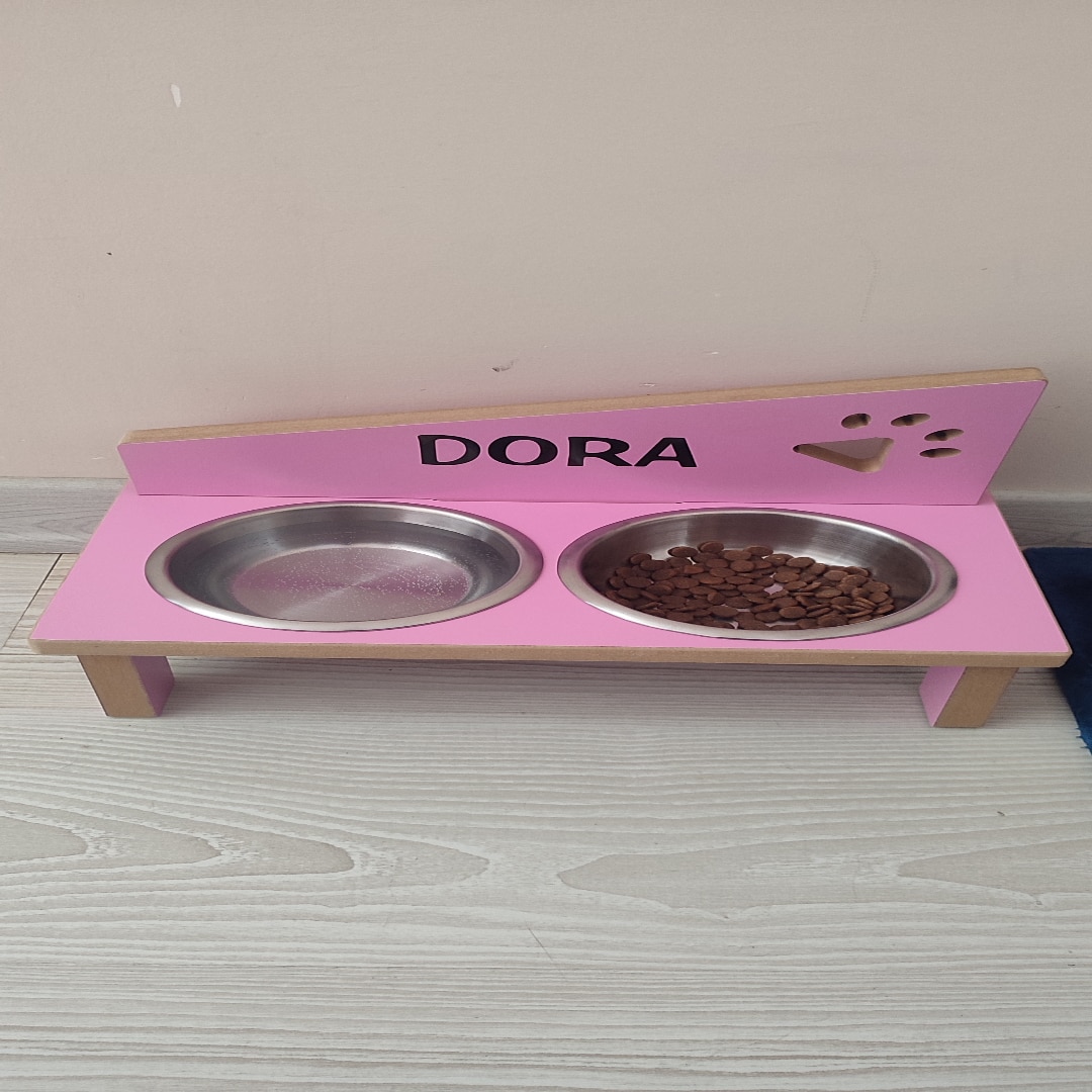 Realwood Özel İsimli Çelik Kaseli Kedi Köpek Mama Kabı Stantı 800 ML
