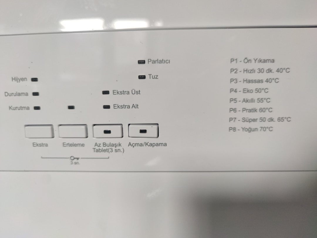 8 program olması çok iyi. Yalnızca alt rafı ya da yalnızca üst rafı doldurup yıkamak için seçim var. Ekstra düğmesi ile fazladan hijyen, durulama ya da kurutma seçmek mümkün. Çok kirli bulaşıklar için ön yıkama seçmek mümkün. Timer var, yıkamaya 1 saat sonra başla gibi. Bulaşıkları acayip pırıl pırıl yıkıyor, bardaklar yeni almış gibi parlak oldu. Bulaşık makinesini Vestel servisi getirip kuruyor. Almadan önce, bir makine mühendisi olarak çok araştırdım, ilk EYT'li emekli aylığımla aldım :)