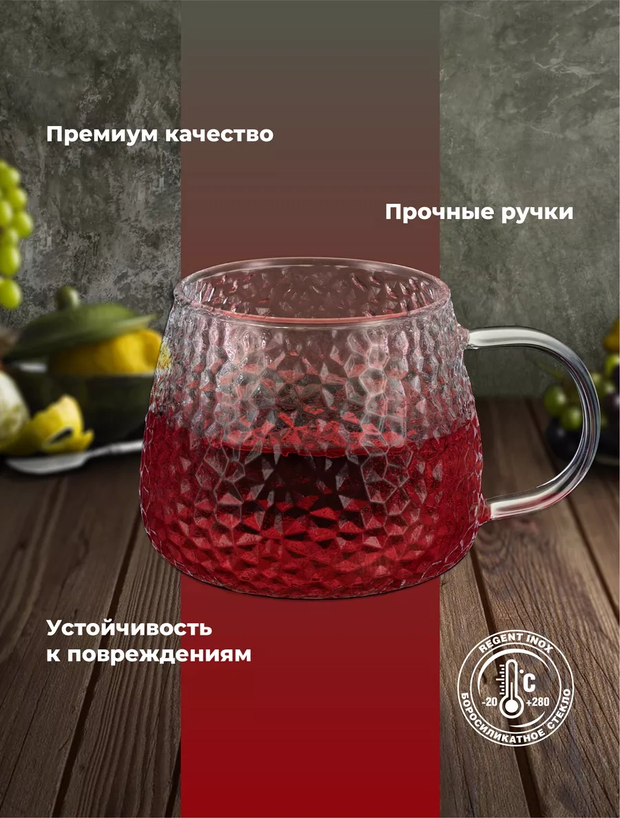 Porsima 2089-1 2li Borosilikat Isıya Ateşe Dayanıklı Cam Kulplu Çay Bardağı Kahve Bardak Kupa Pembe 400 Ml Şeffaf