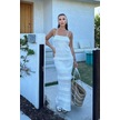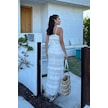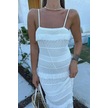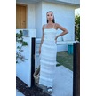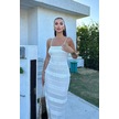 Eteği Volanlı Uzun Elbise Kırık Beyaz
