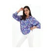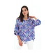 Reglan Kol Baskılı Saten Gömlek - Mavi-mavi Mavi