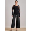 Sistas Kadın V Yaka Omuz Ve Sırt Tül Detaylı Kısa Kol Bluz 4148 Siyah Siyah