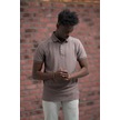 Regular Fit Likralı Kendinden Çizgili Polo Yaka T-shirt Vizon