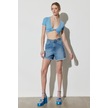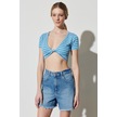Regular Fit Normal Kesim V Yaka Çizgili Crop Bluz W231671400