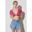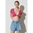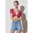 Regular Fit Normal Kesim V Yaka Pembe Crop Bluz Pembe