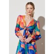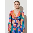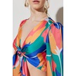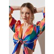 Regular Fit Normal Kesim V Yaka Yeşil Desenli Crop Bluz Yeşil