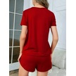 Reka Moda Kadın Kısa Kollu Bisiklet Yaka Baskılı Viskon Bluz Ve Şort Ikili Takım Kırmızı