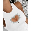 Reka Moda Kadın Kolsuz Kalp Dekolteli Taş Detaylı Kaşkorse Bluz Beyaz