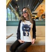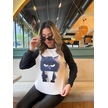Reka Moda Kadın Uzun Kollu Bisiklet Yaka Kedi Baskılı Şardonlu Dalgıç Bluz Beyaz