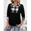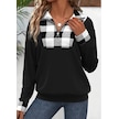 Reka Moda Kadın Uzun Kollu Yakalı Önden Fermuarlı Ekose Detaylı Viskon Iki Iplik Bluz Siyah