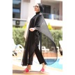 Remsa Mayo Tesettür Mayo Üzerine Desenli Tek Kaftan Pareo Rp001 Siyah Siyah