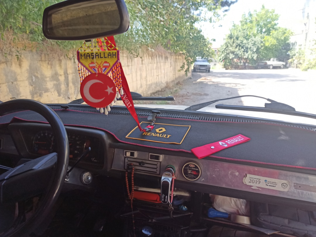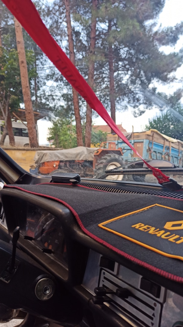 Renault 12 / Toros Nakışlı Siyah Ön Göğüs Torpido Koruma Halısı + Renault Araç Oto Aksesuar