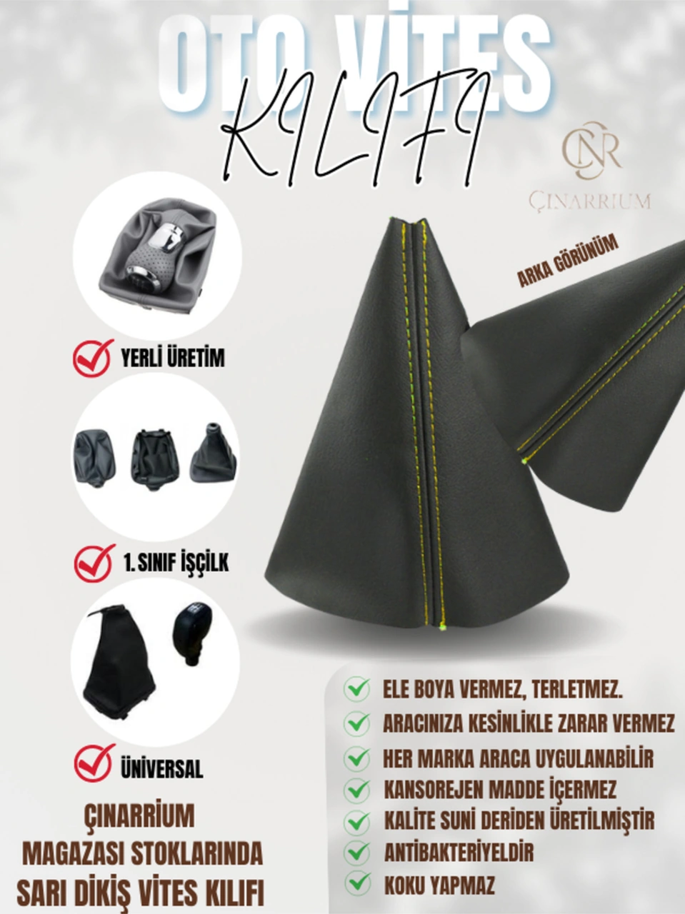 Renault Clio Siyah Deri Prime Tasarım Sarı Spor Dikiş Vites Körüğü