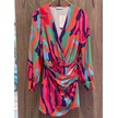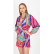 Rengarenk Pastel Renkler Önden Bağlamalı Düğmeli Yakalı Uzun Kol Baharlık Elbise
