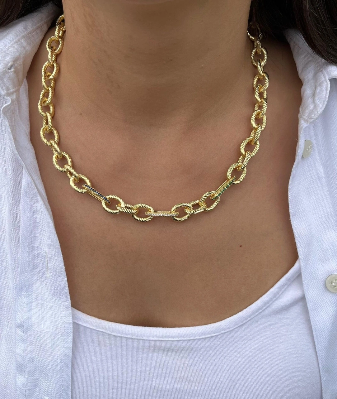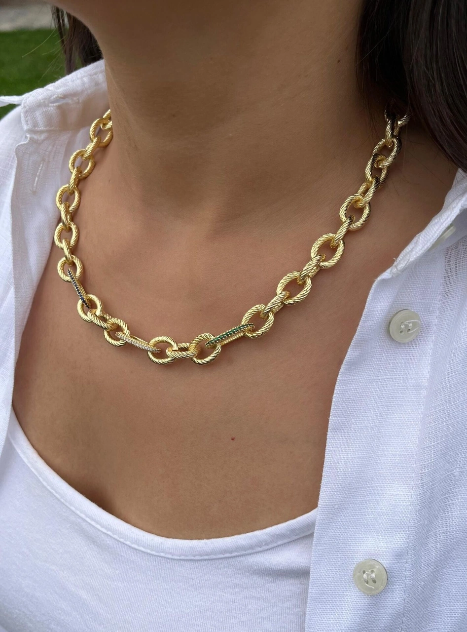 Renk Detaylı Kalın Zincir Kolye Çok Renkli