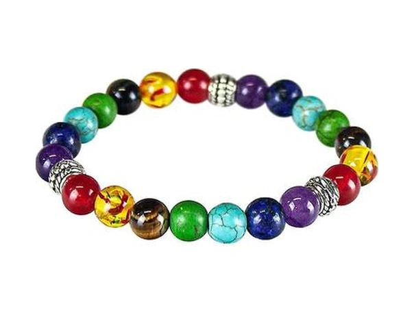 Renkli Boncuklu Çakra Bilezik Altın - Gri