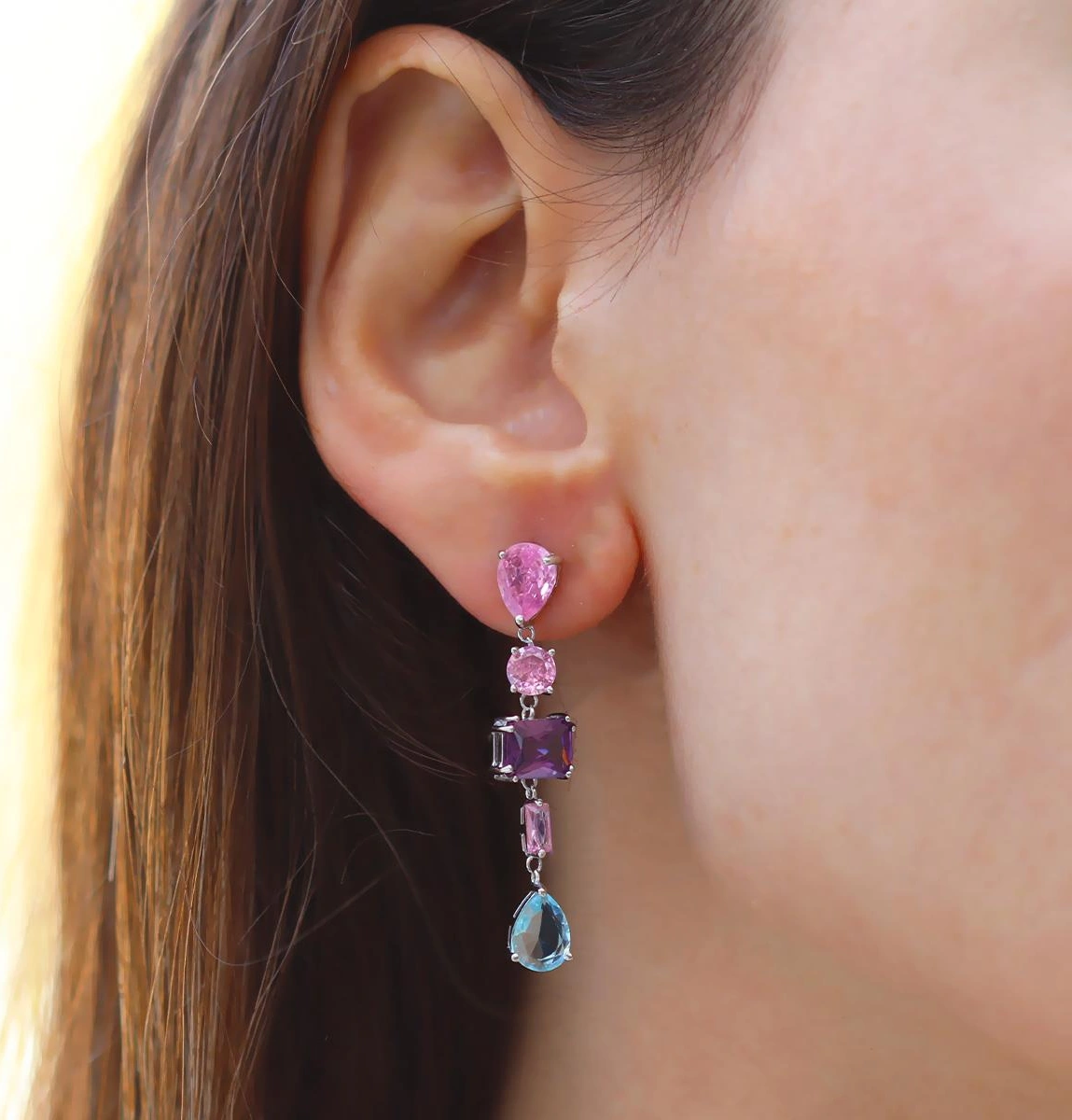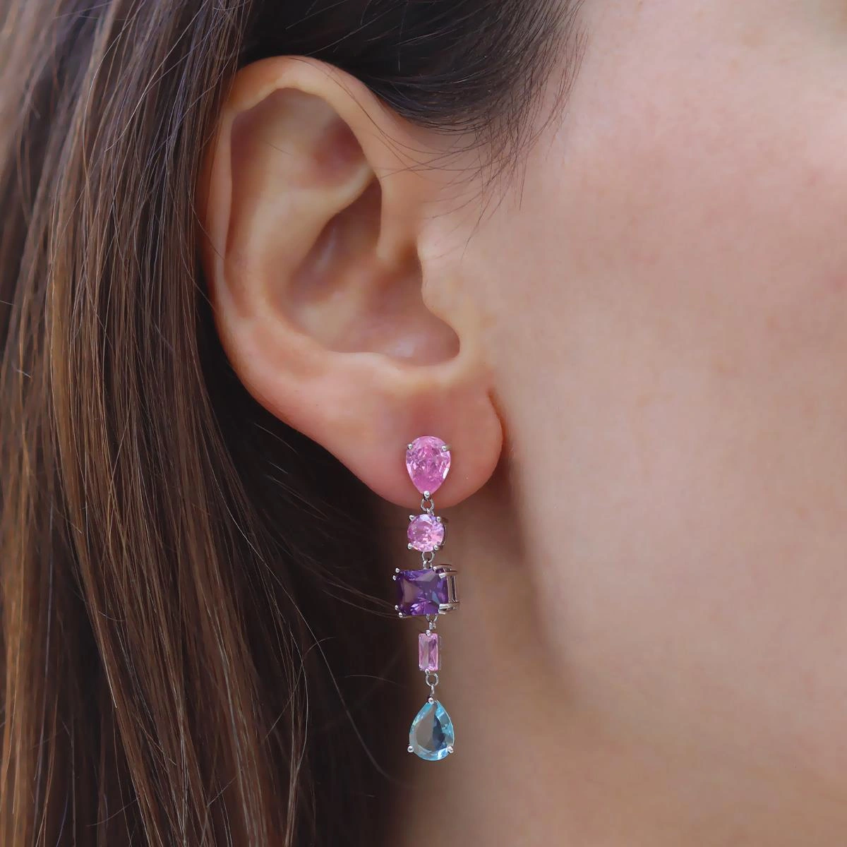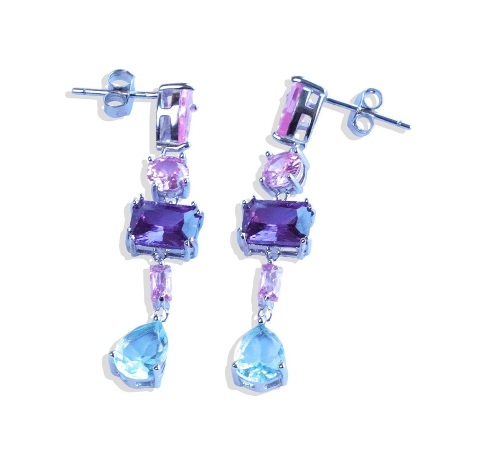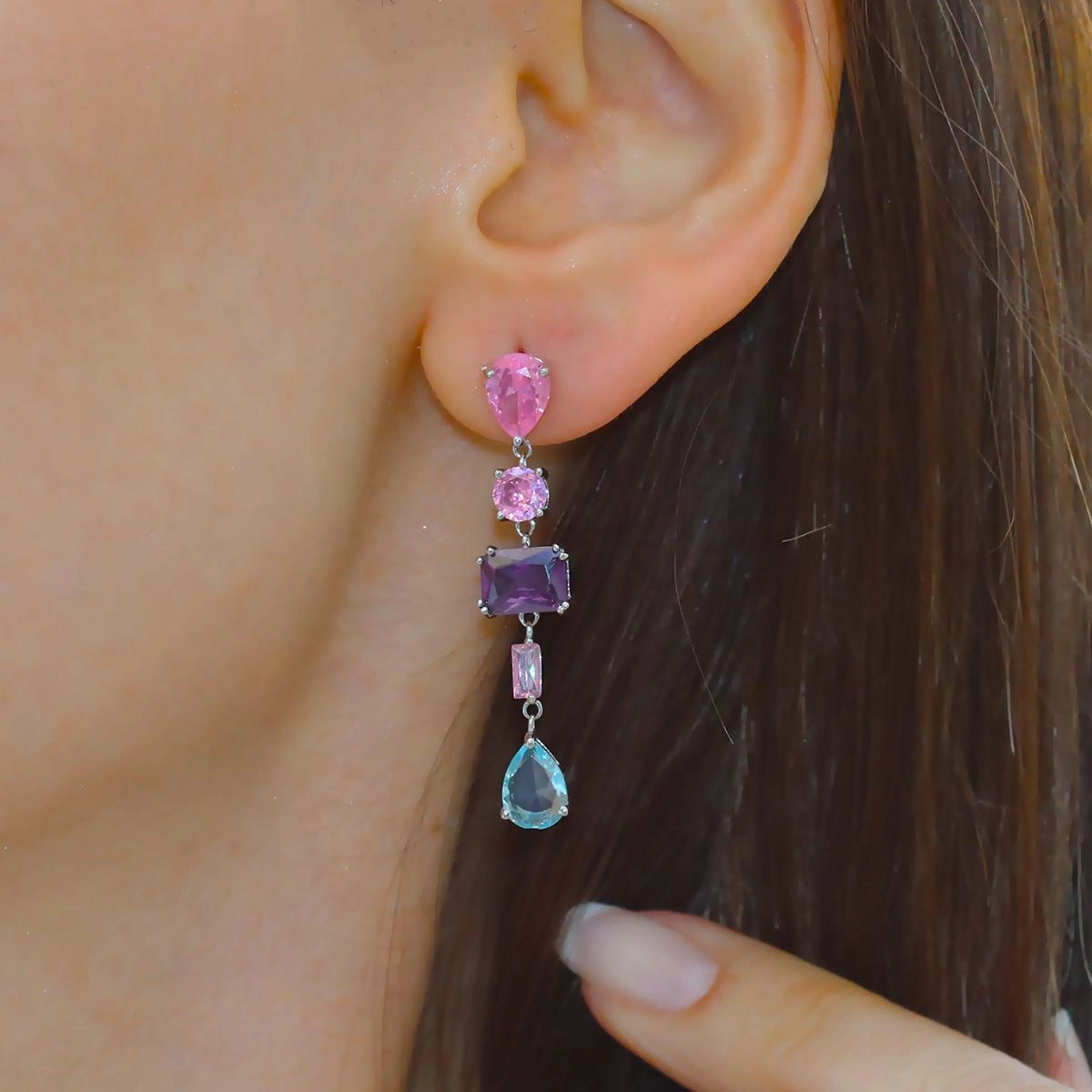 Renkli Damla Taşlı Gümüş Küpe Gümüş
