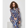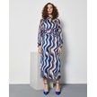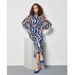 Renkli Desenli Kadın Elbise - Beli Şerit Detaylı - Uzun Kollu - Modern Ve Şık Tasarım - Günlük Ve Özel Gün İçin Elbise Saks