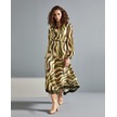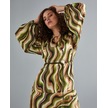 Renkli Desenli Kadın Elbise - Beli Şerit Detaylı - Uzun Kollu - Modern Ve Şık Tasarım - Günlük Ve Özel Gün İçin Elbise Yeşil