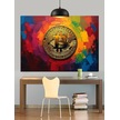 Renkli Fonda Bitcoin Sembolü Dekoratif Kanvas - Mdf Ahşap Tablo