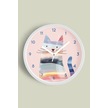Renkli Kedi Tasarım Modern Duvar Saati - Çocuk Odası Duvar Saati - 35cm - Önü Camlı Beyaz Kasa Beyaz